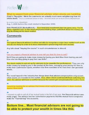 In today's economy, what other job will he (she) be able to find to put food on the table and pay the bills? So, begrudgingly, they do what they must do, in essence, taking little bits in the way of trailer fees and commissions from the many people that entrust them to manage their life savings.